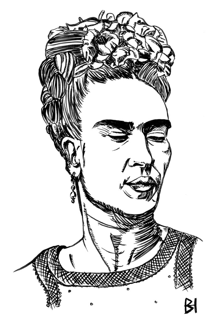 I’ve always had a fascination with Frida Kahlo, her life, and her work. This trilogy of A5 brush ink pen drawings are renderings of some of her most enduring photographs. Prints are available HERE.