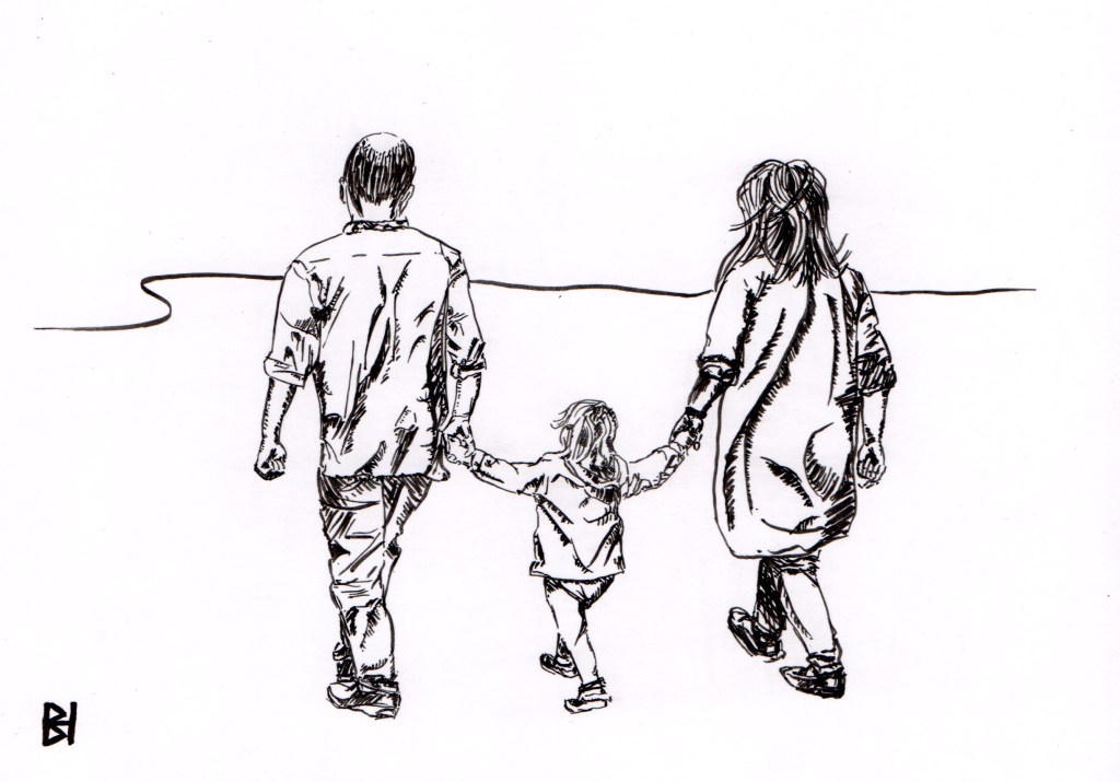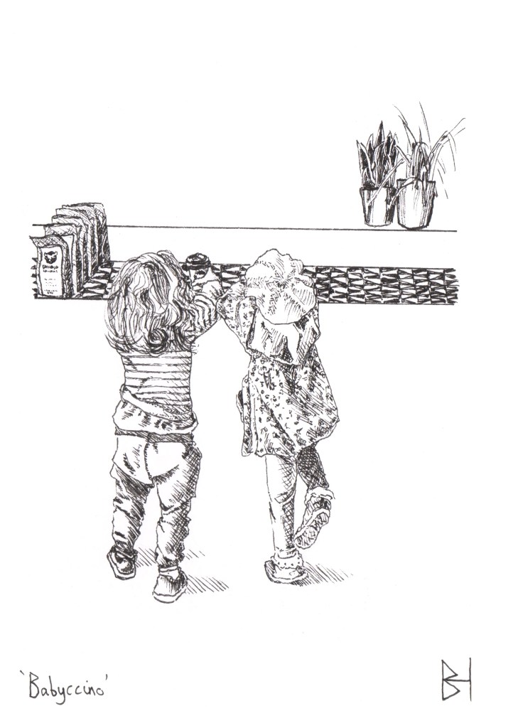 I started creating line drawings of people from behind and was intrigued by the intimacy conveyed, both of the moment in time and between the subjects. It’s been a lovely project capturing these moments, and I have used many of my own family photographs as the reference points. The framed originals in this series are available through my shop HERE and from The Secret Garden, Bengeo.