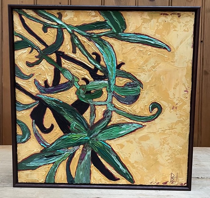 2021 Oil on oil paper. 9″ X 12″ White frame surround, no glass.